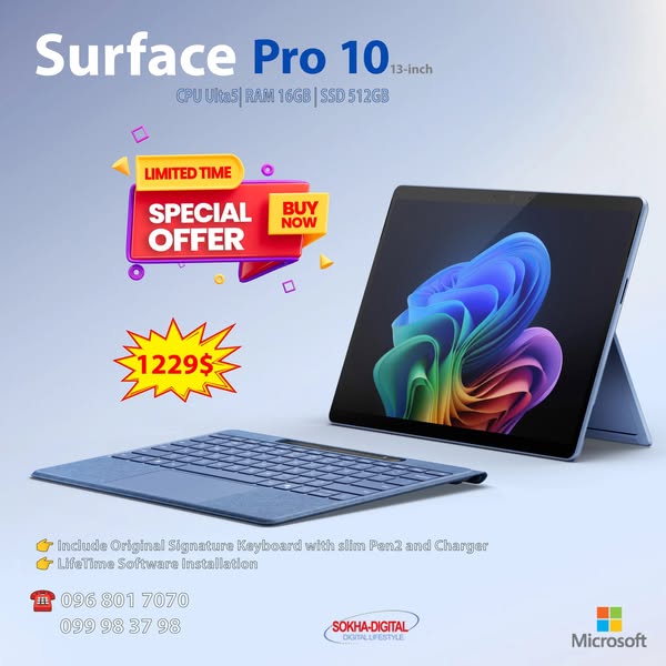 搜索关键词 Microsoft Surface Pro, 2K Tablet, Laptop Tablet Hybrid, sokha store online, year end sale, Phnom Penh Computer Store, touchscreen laptop优势 13-inch 2K+ Super Clear Screen,Special Year End Sale Price,Maps location and website provide easy access