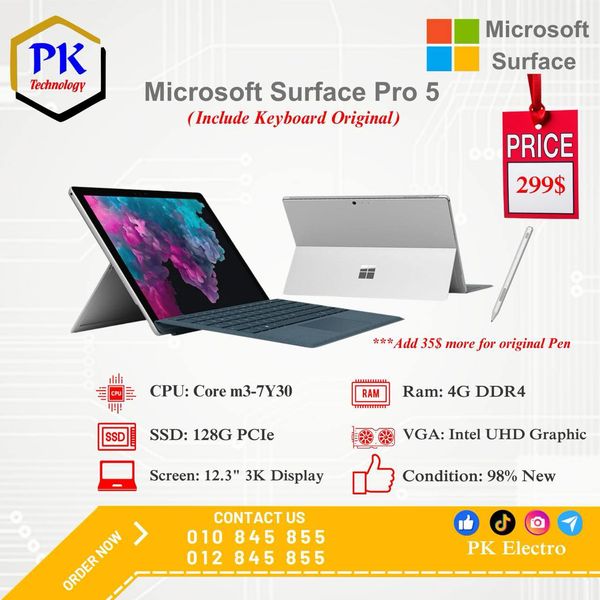 ចូលស្តុកហេីយម៉ូយៗ ជាប្រភេទកុំព្យូទ័រ Microsoft Surface ដែលមានរាងស្តេីង អេក្រង់ច្បាស់ ថ្មកាន់ ហេីយអាចប្រេីជា Tablet ក៍បាន ជាមួយការធានាច្បាស់លាស់ និងការថែមជូនជាច្រេីន៖