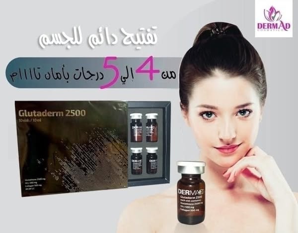 🌸امبولات جلوتاثيون فرنسيه Glutaderm2500 تفتيح دائم فعال من 4 ل 5 درجات وتوحيد للون الجسم كامل
