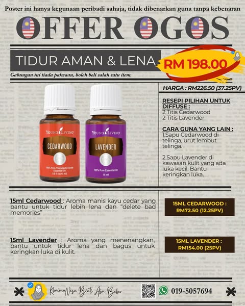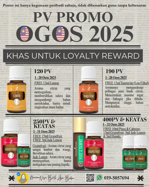 搜索关键词 Young Living essential oils, essential oils Malaysia, aromatherapy products, natural wellness products, August promotion 2025, YL membership, direct sales opportunity, buy essential oils, essential oil benefits, essential oil blends优势 Ready stock,Direct WhatsApp contact for fast response,Assistance with membership, reactivation, and retail purchase