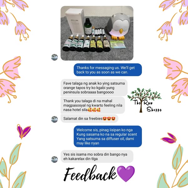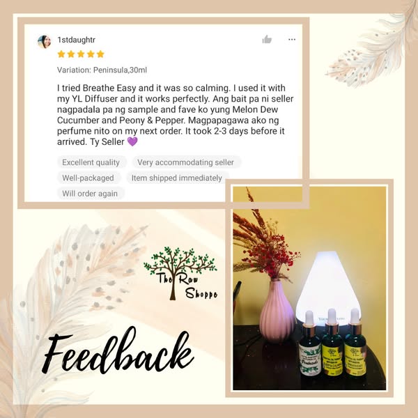 Stress ka ba? Hirap makatulog? Need kumalma at marelax? May ubo at sipon? May Anxiety and Panic attack? Need to Focus and concentrate? Essential Oil Therapy Diffuser Oil is what you need. Super affordable and Super effective, no need to buy high end and expensive one. We have lots of variants and scents to choose from. Guaranteed High Quality Oils. When quality matters to us....