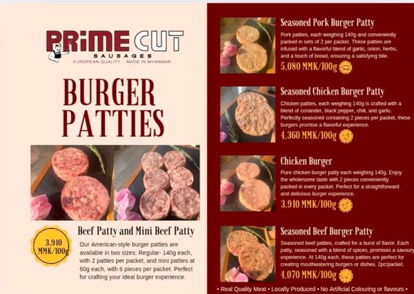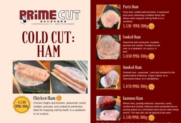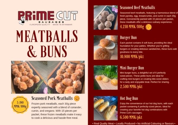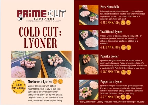 At Prime Cut, we proudly offer European-style sausages made right here in Myanmar with 100% premium meat. With over 10 years of experience, we guarantee quality and authentic flavor.