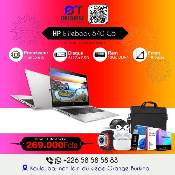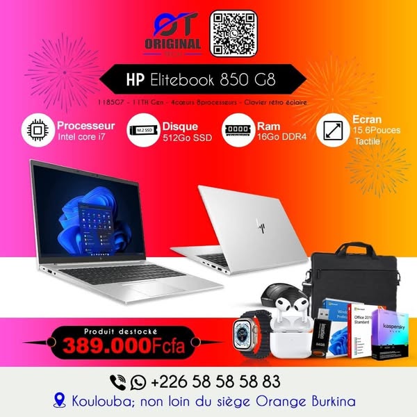搜索关键词 Laptop Burkina Faso, Computer Sale, Original-Tech, HP Laptop, Smartwatch Offer, Windows License, Discount Computer, ordinateur portable, airpod优势 赠送多种礼品 (Sac, Souris, Antivirus, Clé USB, Airpods, Smartwatch, Windows and Office License),价格有竞争力 (Competitive prices),电脑品牌多样 (HP, Omen, Victus, Dragonfly, EliteBook)