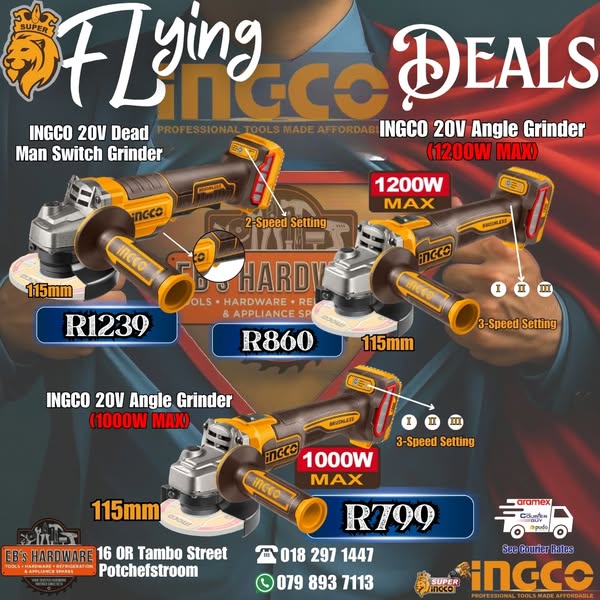 EB's Hardware •Tools•Hardware• Refrigeration•Appliance Spares & Electrical,een van die top INGCO verskaffers in SA!