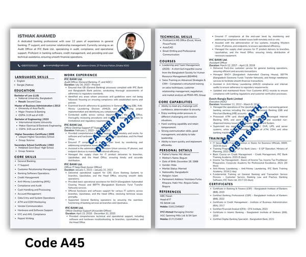 Professional CV এর সাথে Standard Cover Letter ফ্রি।