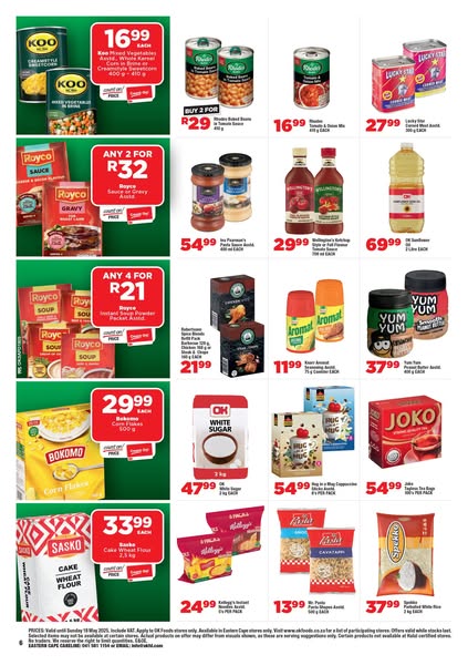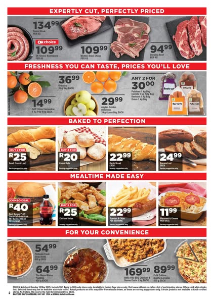搜索关键词 OK Foods, grocery deals, May essentials, Kidds Beach, food specials, milk and juice, chicken braai, instant coffee, maize snacks, Coca-Cola offer优势 Discounted prices,Variety of essential products,Limited-time offer