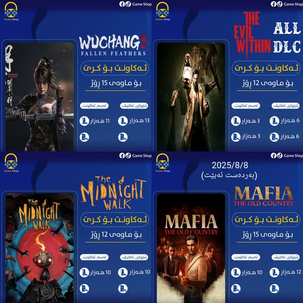 سەروو (٨٠) یاری و (٦ دانە) پڵەس وە زیاتر لە (٤٠) یاری بە شێوازی کرێ بۆ ئێوەی ئازیز