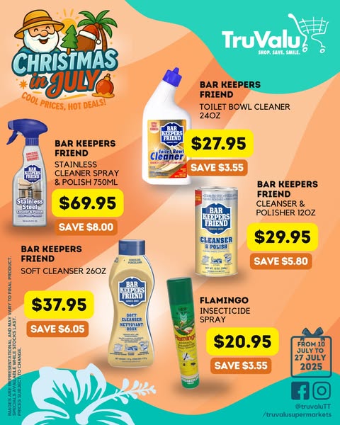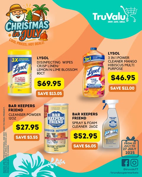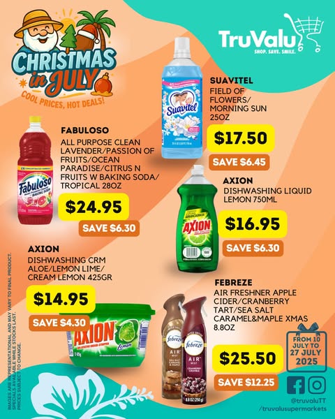 Get ready for Christmas in July at TruValu! Enjoy cool prices and hot deals on cleaning and hygiene products from July 10 to 27, 2025. Don't miss out on these mid-year savings!