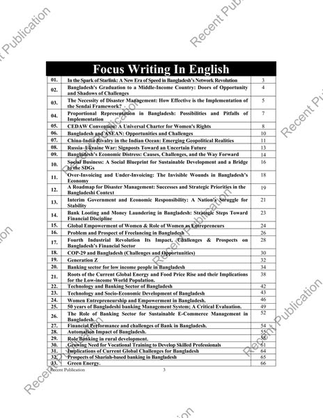 সাম্প্রতিক ঘটে যাওয়া আন্তর্জাতিক ও বাংলাদেশ বিষয় নিয়ে নিয়োগ পরীক্ষায় আসতে পারে এমন টপিক সিলেক্ট করে বইটি সাজানো হয়েছে। বইটি আপনাদেরকে Focus Writing, Argumentative ও বর্তমান বিশ্ব ও দেশ সম্পর্কে যেকোন লেখনিতে সাহায্য করবে।