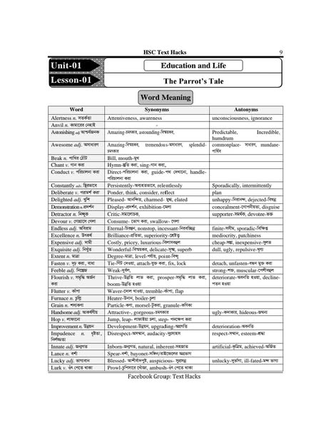 ২. Word এর বাংলা মিনিংসহ Synonym & Antonyms