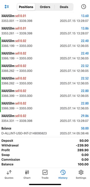 A client started with just $50, made $289 profit, and withdrew $240 in one session!
