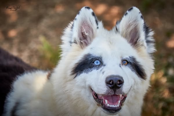 La particolarità di questo cuccioli rispetto ai fratelli, è sicuramente la parte estetica: occhi di colore diverso (eterocromi), mascherina "da super eroe", super peloso e con una struttura compatta e scattante.