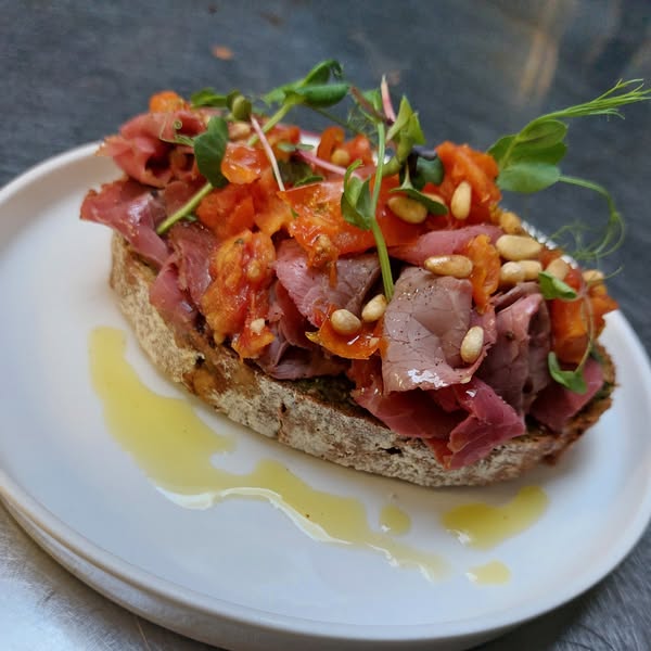 Lekkere wijntjes en leuke tapas, proef zeker onze nieuwste : de New York Deli Pastrami Sandwich !