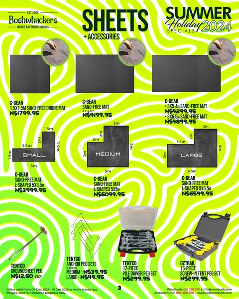 搜索关键词 summer holiday specials, camping fishing gear, affordable outdoor equipment, Namibia adventure, bushwhackers deals, braai potjie, offroad camping, caravan overland, outdoor celebration, summer is here优势 Summer Holiday Specials,Affordable Prices,Wide Range of Products,Quality,Value