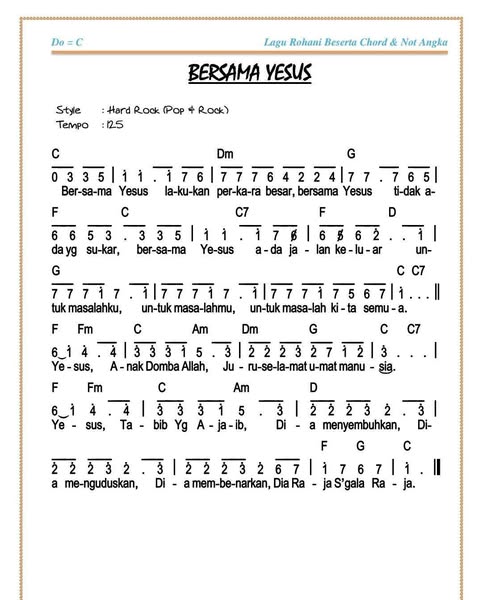 搜索关键词 belajar musik, lagu rohani, keyboard yamaha, chord lagu, music education, music tutorial, piano lessons, guitar lessons, saxophone lessons, trumpet lessons优势 适合儿童和初学者,提供两种音调版本(C调和原调),可打印PDF格式