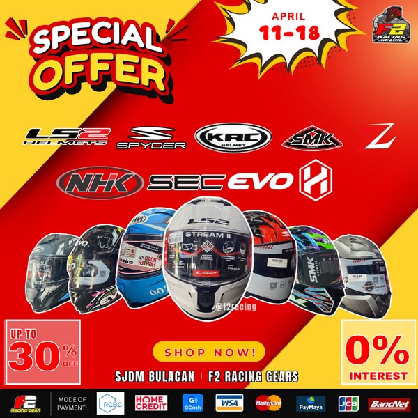搜索关键词 F2Racing sale, Motorcycle helmets, Moto accessories, Top box sale, Home Credit motorcycle, Summer sale Philippines, Motorcycle gear Philippines, LS2 helmet offer, Discount motorcycle accessories, F2Racing HomeCredit优势 Up to 70% off on selected items,Buy 1 LS2 Full Face Helmet Get 1 FREE Half Face Helmet,Home Credit option available with 0% interest,Wide range of brands and styles
