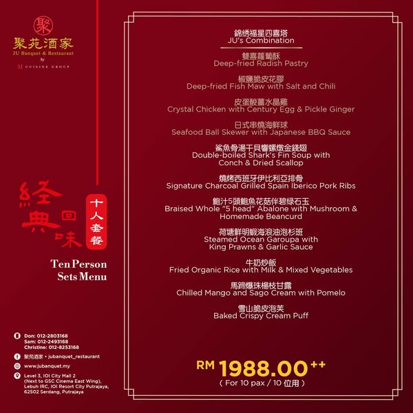 🍽️ 𝗝𝗨 𝗕𝗮𝗻𝗾𝘂𝗲𝘁 & 𝗥𝗲𝘀𝘁𝗮𝘂𝗿𝗮𝗻𝘁’s New Set Menus | A Tailor-Made Cantonese Feast Just for You