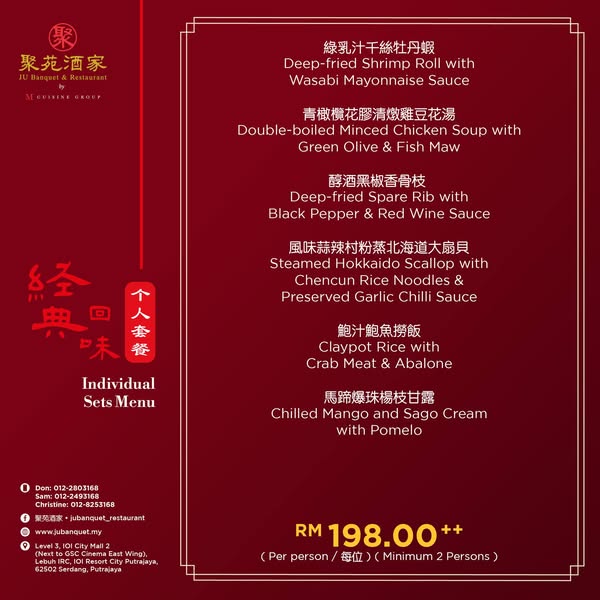 🍽️ 𝗝𝗨 𝗕𝗮𝗻𝗾𝘂𝗲𝘁 & 𝗥𝗲𝘀𝘁𝗮𝘂𝗿𝗮𝗻𝘁’s New Set Menus | A Tailor-Made Cantonese Feast Just for You