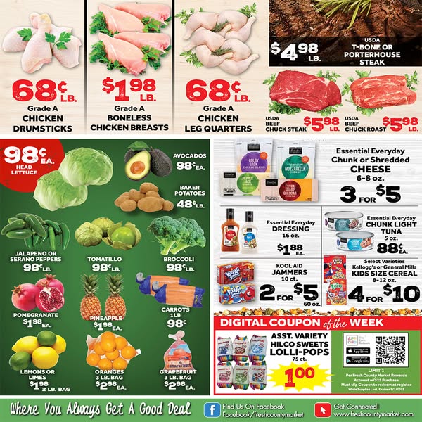 搜索关键词 fresh county market, grocery savings, healthy food choices, instacart delivery, weekly ad sales, new year deals, produce and proteins, exclusive app deals, email updates, fresh salads fruits优势 Fresh produce,Healthy options,Convenient Instacart delivery,Exclusive deals via app and email