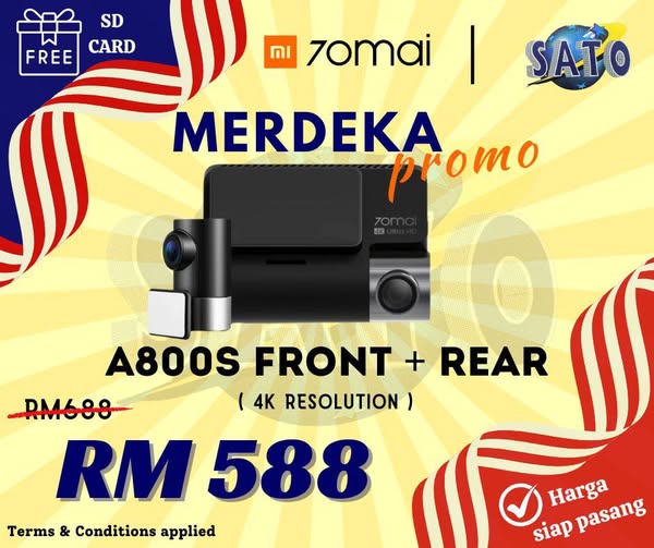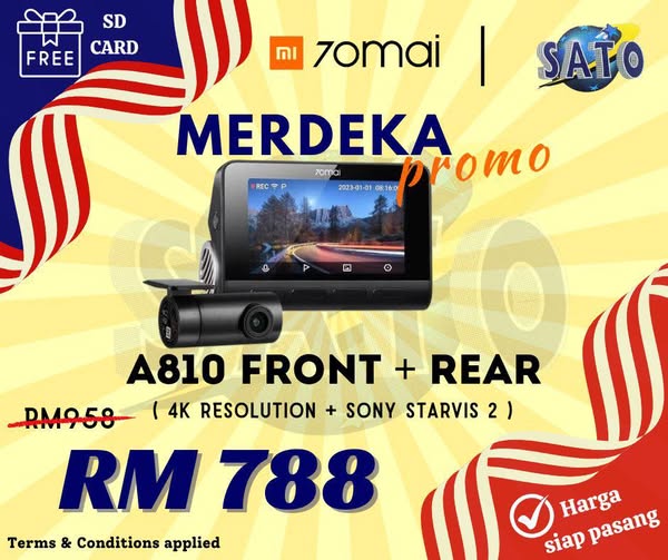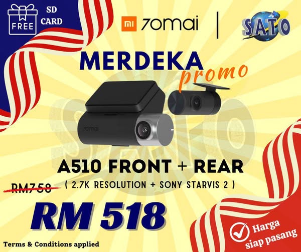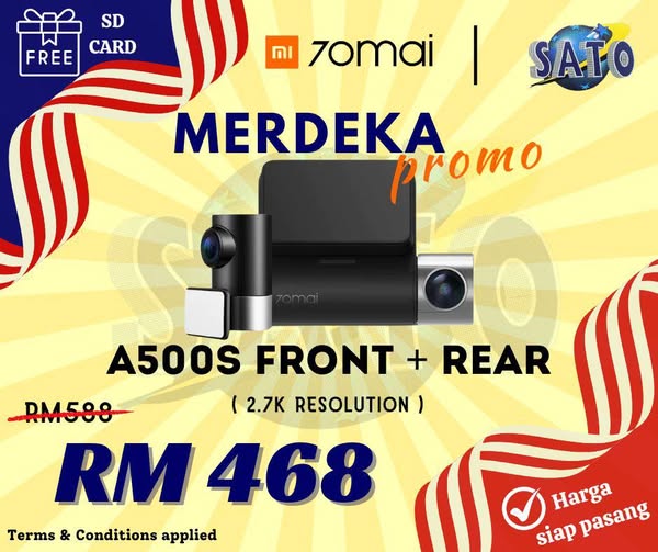 搜索关键词 70Mai Dash Cam, Merdeka Sales, Car Accessories, Dash Cam Installation, Malaysia Car Accessories优势 Affordable prices for various models,Installation service available,Special promotion includes memory SD card,18-month warranty,Optional hardwire kit for parking mode