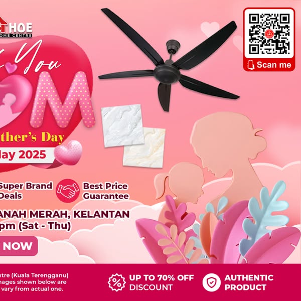 搜索关键词 Mother's Day deal, Home improvement, Kitchen appliances, Bathroom renovation, Tiles sale, Kelantan Terengganu, Home living, Aik Hoe, Mega Sale, Home Centre优势 Wide range of home improvement products,Mother's Day promotion,Multiple locations in Kelantan and Terengganu
