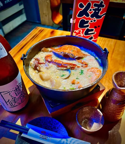 搜索关键词 台中居酒屋, 台中美食, 日式串燒, 冬季暖胃料理, 螃蟹海鮮粥, 雞胸一夜乾拉麵, Taichung Izakaya, Japanese Skewers, Winter Food优势 冬季暖胃料理,多樣化日式料理選擇 (串燒, 海鮮粥, 拉麵, 鍋物),適合聚餐,提供包廂,促銷清酒活動