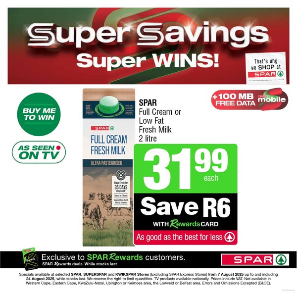 搜索关键词 SPAR Super Savings, August Grocery Deals, Discounted food, Weekly Offer, Daily Offer, SPAR promotions, SPAR retailer, Food Discount, Grocery Sale优势 超低价格,时间有限的优惠,各种商品