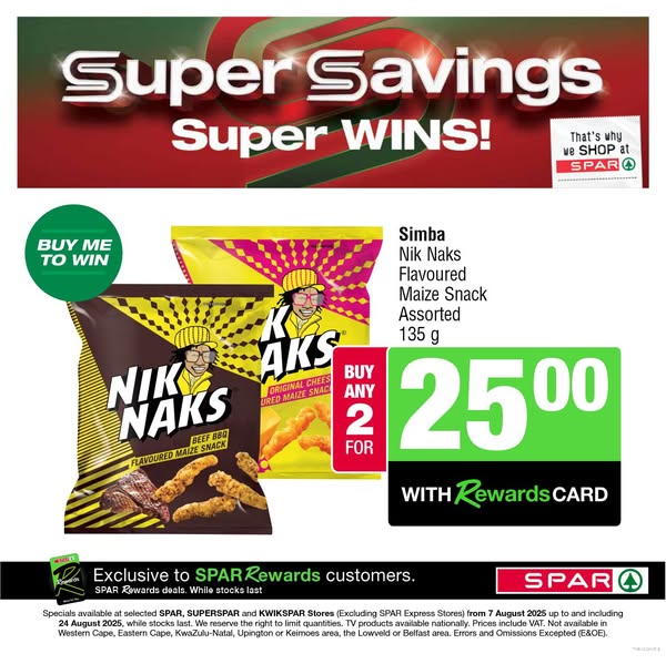 🎈August just dropped… and so did the prices at SPAR! 💥 We’ve got a trolley full of handpicked deals waiting for you from 7 – 24 August 2025. Don’t miss out! 🛒😉 Errors & Omissions Excepted (E&OE).