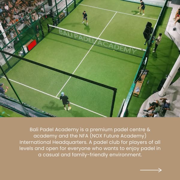 搜索关键词 Bali Padel, Padel Academy, Sports Bali, Bali Sports, Padel Lessons, Sports Tourism Bali, Fitness Vacations, Active Holiday, Bali activities, Padel coaching优势 Professional Coaching,Excellent Facilities,Beautiful Location