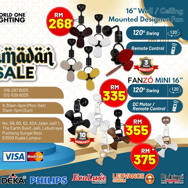 搜索关键词 Ramadan sale, lighting store, fans water heaters, home appliances, Bukit Jalil, Malaysia lighting, wholesale price, free gift, home decor, LED lights优势 Wholesale prices,Warranty exchange,Quality assurance,Friendly assistant advice,Free gift