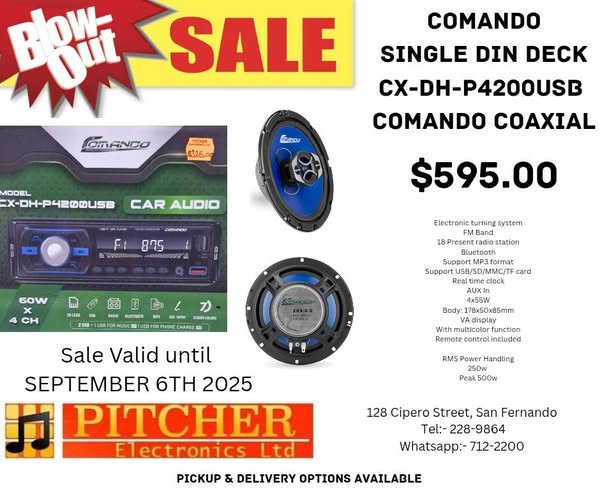 搜索关键词 Independence week sale, car audio sale, electronics discount, limited time offer, Stetsom products, comando audio packages, wifi smart bulb, San Fernando Trinidad, mini amp combos, cellphone projectors优势 Discounted prices,Variety of products on sale,Limited-time offer,Pickup and delivery available