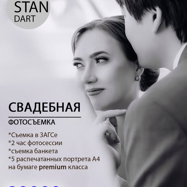 搜索关键词 wedding photography, kazakhstan wedding, фотосессия свадьба, wedding packages, студийная фотосессия, wedding photographer services, affordable photography, photography service, wedding pictures, professional photography优势 Variety of packages to suit different budgets,Offers both studio and location photography,Includes printing of portraits,Some packages include video reels and photo books,Studio package includes champagne
