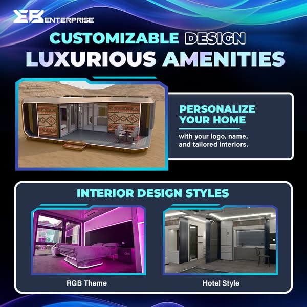 搜索关键词 capsule house, diy house, prefabricated housing, affordable housing, modular home, resort development, customizable space, quick installation, modern living, portable home优势 Stylish and customizable design,Luxurious amenities,Cost and time savings (quick installation),Portable and easy setup,Versatile use (home, resort, development)