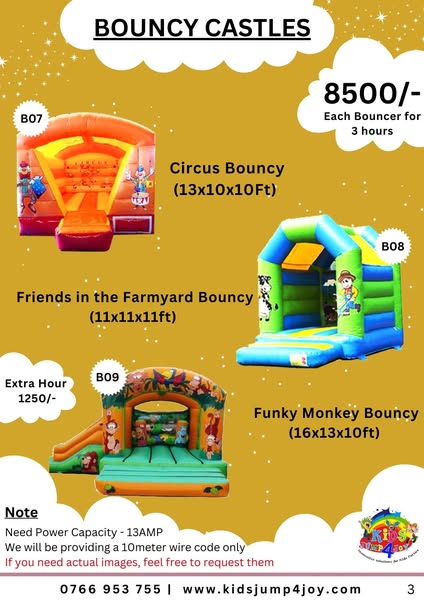 #KidsJump4Joy #PartyTime #BouncyCastle #FunForEveryone #EventRentals #2025PriceList