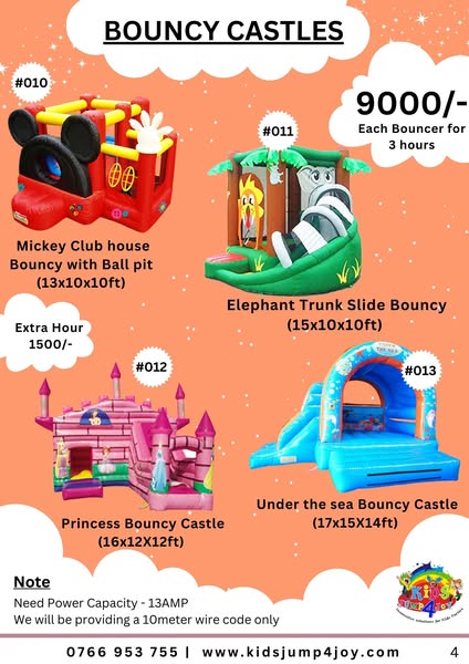 #KidsJump4Joy #PartyTime #BouncyCastle #FunForEveryone #EventRentals #2025PriceList