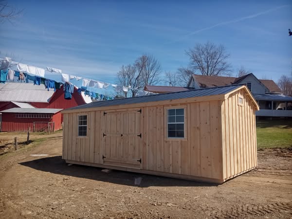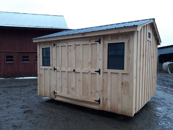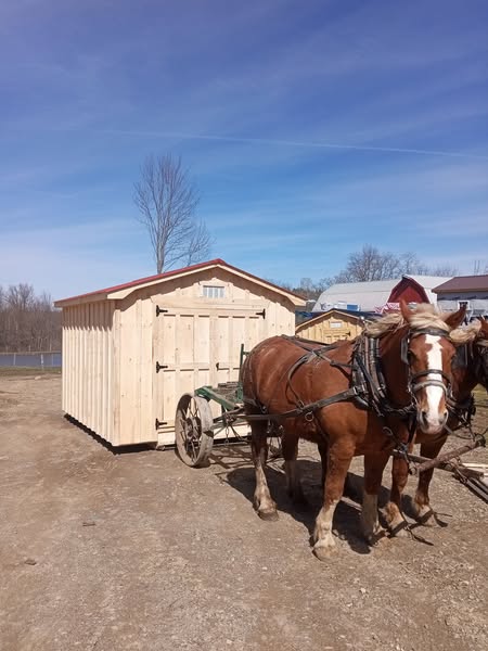 Thank you for your interest! All sheds made per order. Price does not include delivery. Please message me the size you are interested in, the town you are in, and weather you’re drop off spot is easy enough, with room to maneuver, for a simple truck and trailer. The ease of the drop off makes a big difference on time frame.