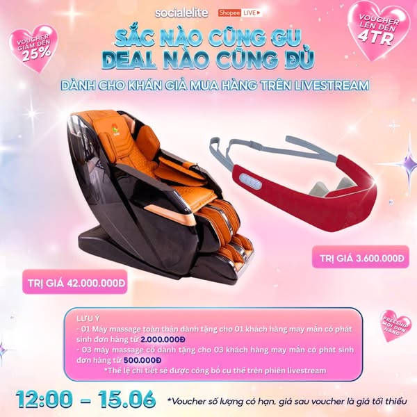 搜索关键词 Shopee Live, Deals, Voucher, Free Shipping, Exclusive Gift, Livestream Shopping, Online Shopping Vietnam, Discount offer, Online event优势 Voucher up to 25% off,Voucher up to 4 million VND,Free shipping on all orders,Exclusive gifts for livestream buyers (total value 52 million VND)