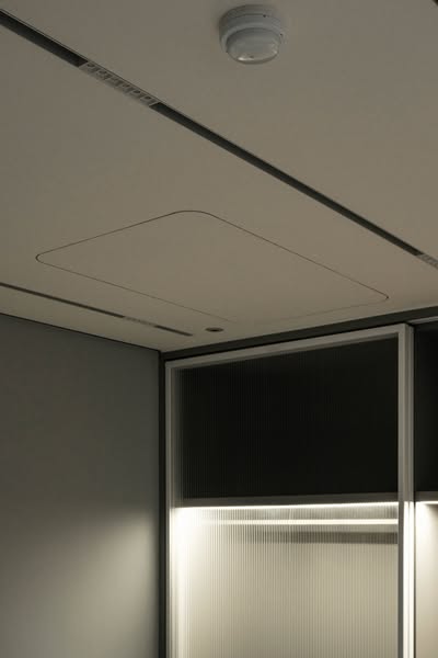 搭配格紋玻璃滑門、線性燈光與藏燈設計,