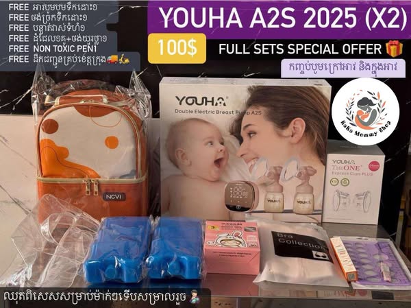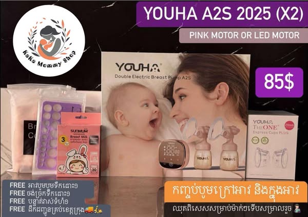 搜索关键词 youha pink breast pump, breastfeeding accessories, baby care products, cambodia mom and baby, portable breast pump, milk storage bag, mommy bag, electric breast pump, temperature-controlled bag, baby fan优势 Comprehensive breastfeeding solution,Updated version with improved features (X2 Pumping Function, quiet motor),Includes various accessories for convenience,Portable and wearable breast pump options,Temperature controlled bag and ice pack included