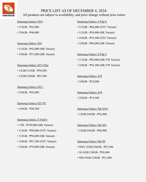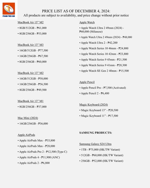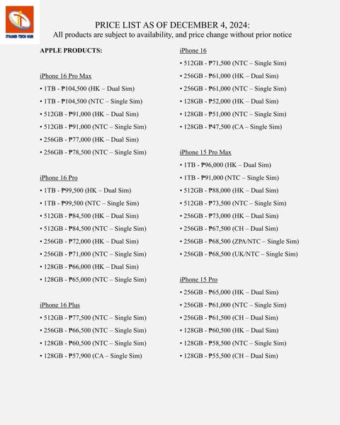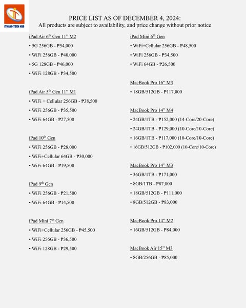 PRICE LIST as of DECEMBER 4, 2024: 📱💻