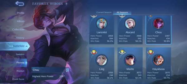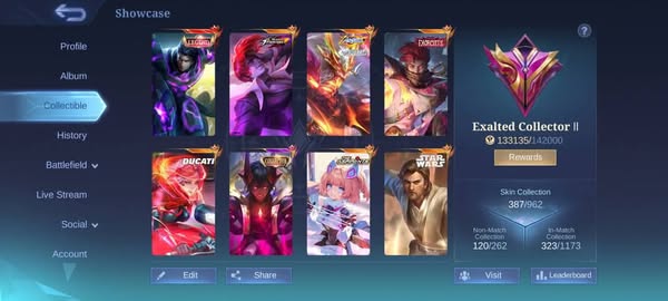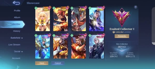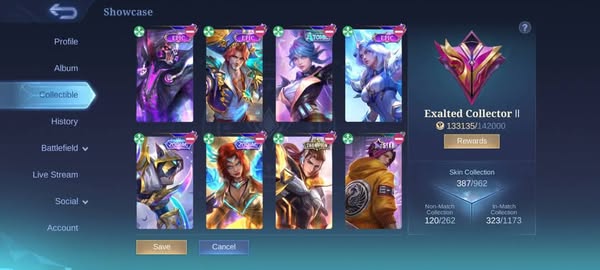 Alu Lg & Starwar/ Chou Kof & Epic/Moskov Allstar/Granger Exorcist/ Benedetta Ducati / Dyrroth Coll / 2 Prime/ Anegla Aspirant / Haya & Lesley Annual st