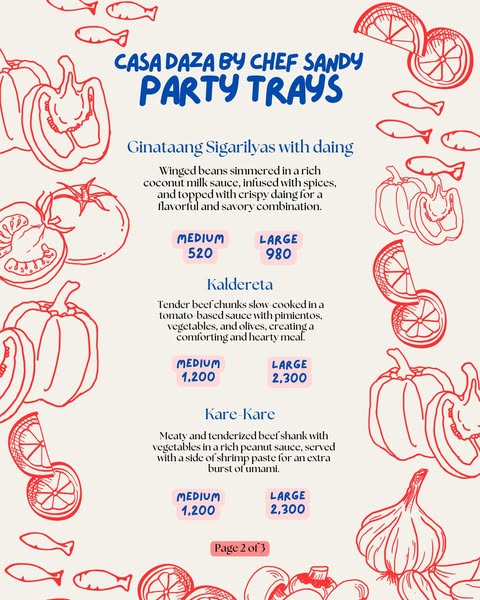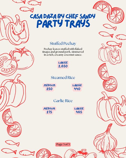 Here's the updated menu of Chef Sandy Daza's party trays! Swipe to see the complete list of all new offerings.