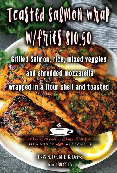 HEALTHY HUMP DAY SPECIALS ARE AVAILABLE FROM 11:00-4:00 Mi Casa Su Cafe & Lounge 1835 N. MLK DRIVE 414.488.9916 🥗 🥗🐟🐟🌯🌯🍤🍤🍔🍔🍟🍟 🌱 🌱 🥑 🥑 🥩🥩 🐔🐔 ✌🏾 😎