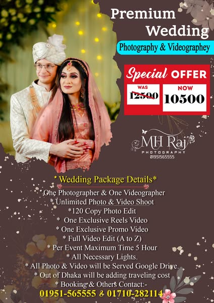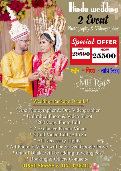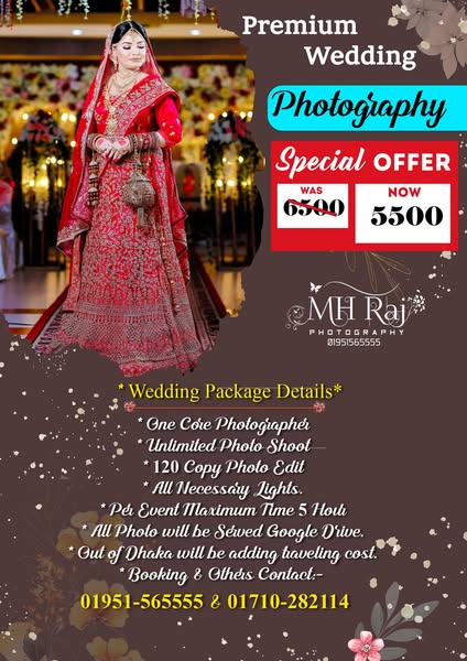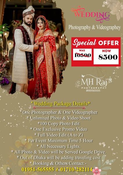 বিয়ের মত গুরুত্বপূর্ণ একটা দিনকে সবাই চায় স্বরণীয় করে রাখতে। বিয়েকে ঘিরে সবার আয়োজনের ও যেন কমতি নেই।। সেই আয়োজনটাকে সৌন্দর্যমণ্ডিত করে রাখতে কে না চায়? আপনাদের সেই বিশেষ মুহুর্তটাকে আরো রঙিন করে তুলতে, MH Raj Photography আপনাদের সাথে আছে সবসময়।