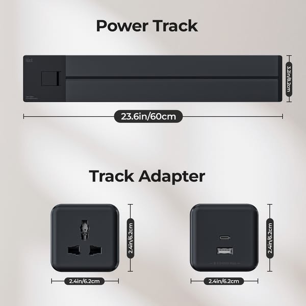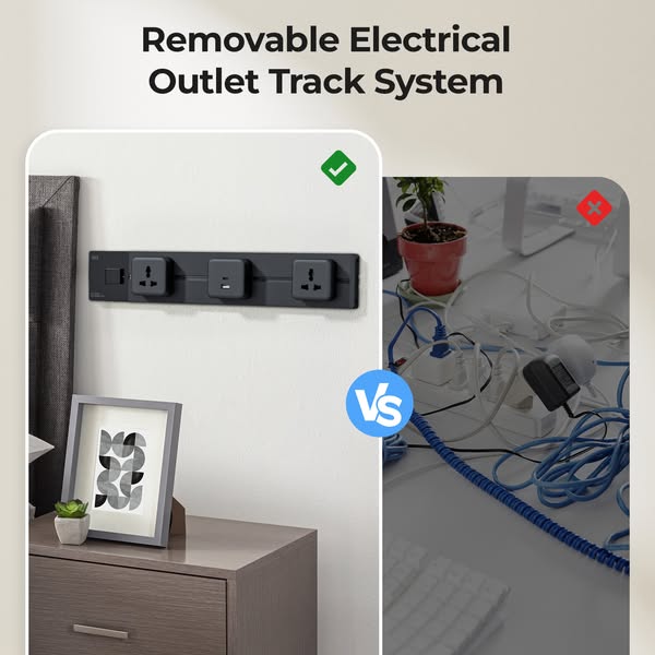 [8000W High Power & Safety] - 8000W high power, making your electrical appliances more free and convenient to use. The power track socket system ensures reliable performance. Ideal for home and office setups, this track socket can safely power multiple devices simultaneously, making it perfect for demanding environments. [Special Deisgn] - The removable outlet adapter on this power socket track allows for customizable power solutions. It includes 1 USB socket and 2 universal sockets to meet various charging needs. The flexibility of this power track socket enables easy arrangement and quick reconfiguration for optimal accessibility and convenience, suitable for any setting. [Easy to Use] - Our wall power strip offers a simple installation process. The wall socket track system is very convenient and easy to use, just turn it clockwise to open and counterclockwise to close. Equipped with a modern black finish, this power strip adds a stylish touch while providing straightforward usability. It’s perfect for those who want a power solution that’s both functional and visually appealing.