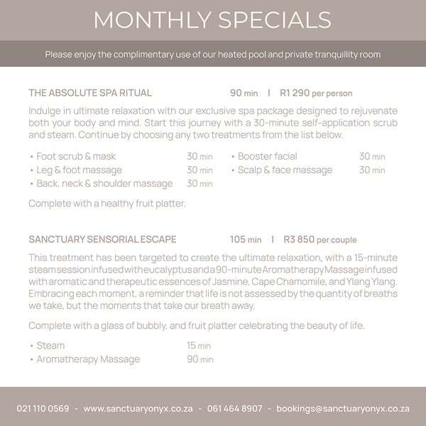 Sanctuary Spas @ The Onyx March 2025 SPECIALS are here!