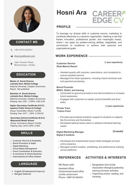 搜索关键词 cv making, resume writing, professional resume, HR approved, job search, bdjobs, bangladesh jobs, resume writer, cv maker, job application优势 HR Approved Design,Suitable for any field,Zero advance payment,Fast Delivery