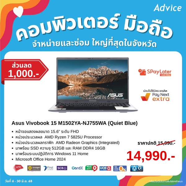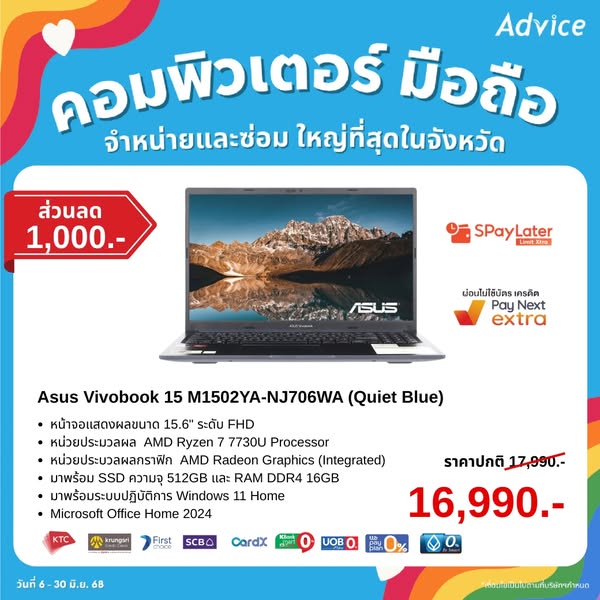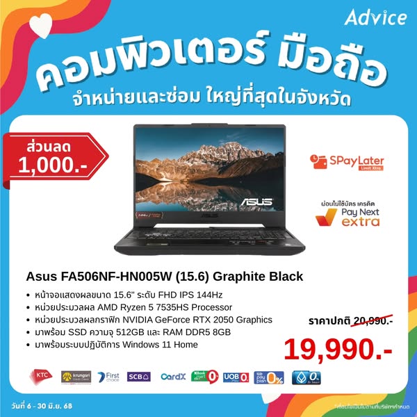 搜索关键词 Advice Phichit, Notebook Sale, Laptop Discount, IT Store, SPaylater Installment, Pay Next Extra, Computer Shop near me, Thailand Electronics, Mid Year Sale, Cheap Notebook优势 Discounts up to 2,000 THB,Installment options without credit card,Wide range of brands available