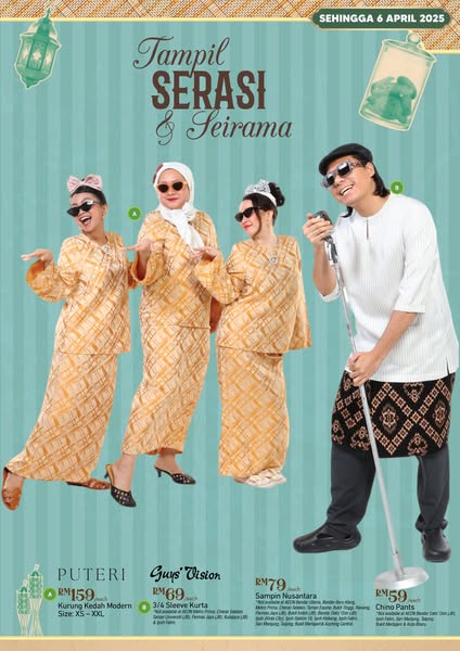 Raikan Ramadan & Syawal dengan penuh gaya dan keceriaan bersama koleksi fesyen terkini untuk seisi keluarga! Dari baju kebaya, kurung, dan baju Melayu moden hingga ke kasut, beg tangan serta travelling bag & troli eksklusif – semuanya ada untuk melengkapkan persiapan raya anda!