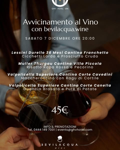 搜索关键词 wine tasting, Vicenza event, Italian wine, restaurant event, hotel Vicenza, Saturday night event, affordable wine, wine and food pairing, social event Vicenza, WhatsApp booking优势 Selection of Wine Labels,Delicious Menu,Affordable Price,Social Atmosphere